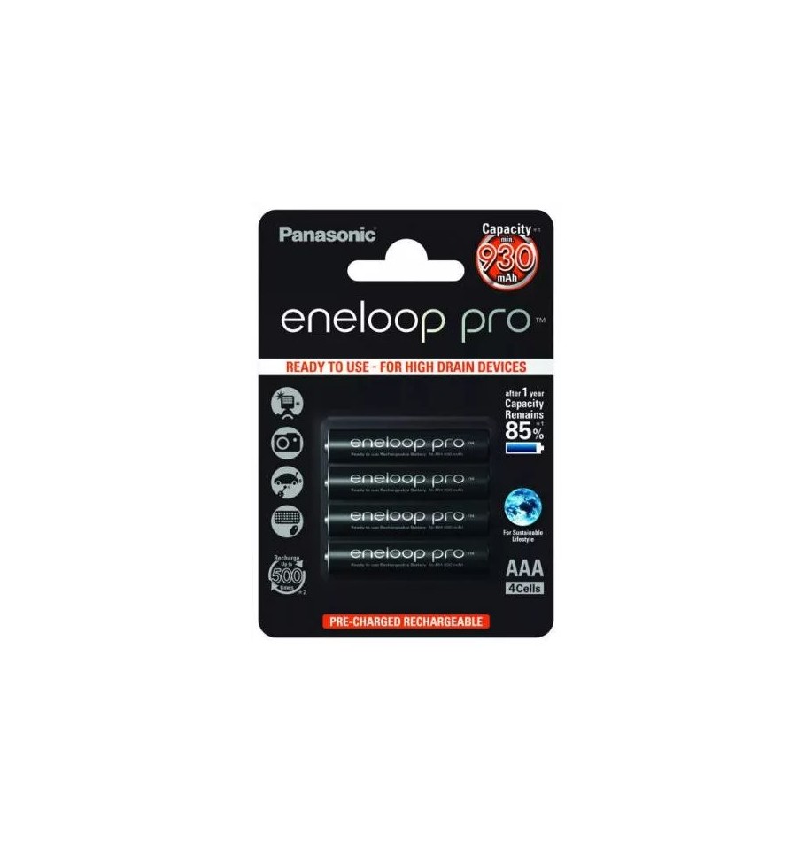 Acumulatori Panasonic Eneloop Pro AAA R3 930mAh 1,2V Ni-MH BK-4HCDE/4BE set 4 buc