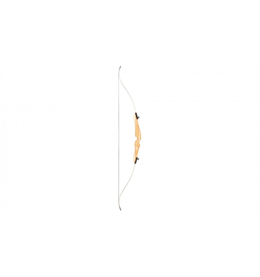 Arc recurv clasic. Mâner ergonomic din lemn de frasin, cu prinderi metalice.