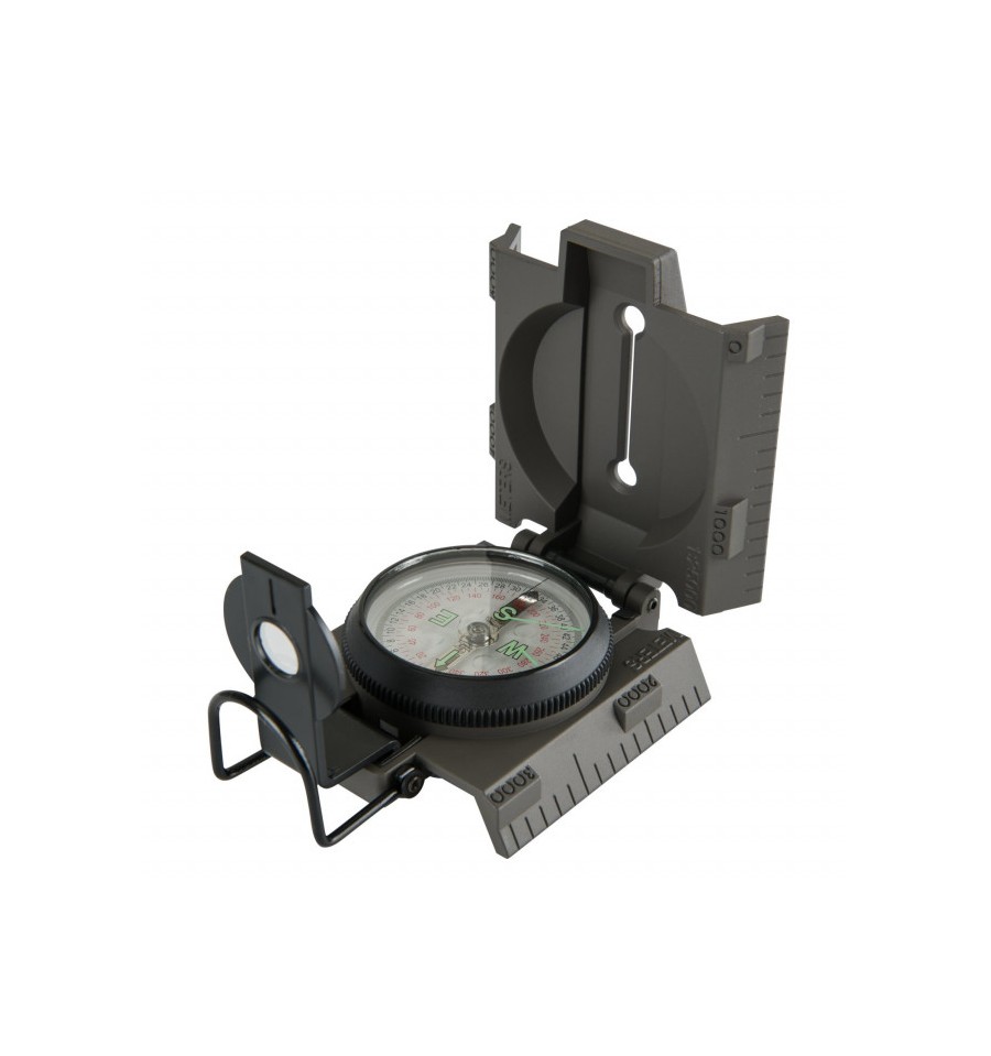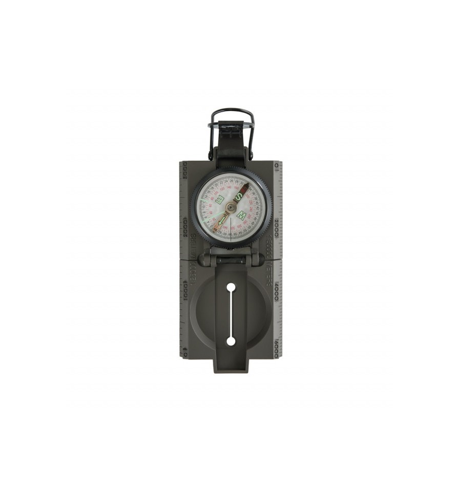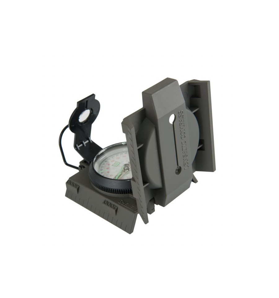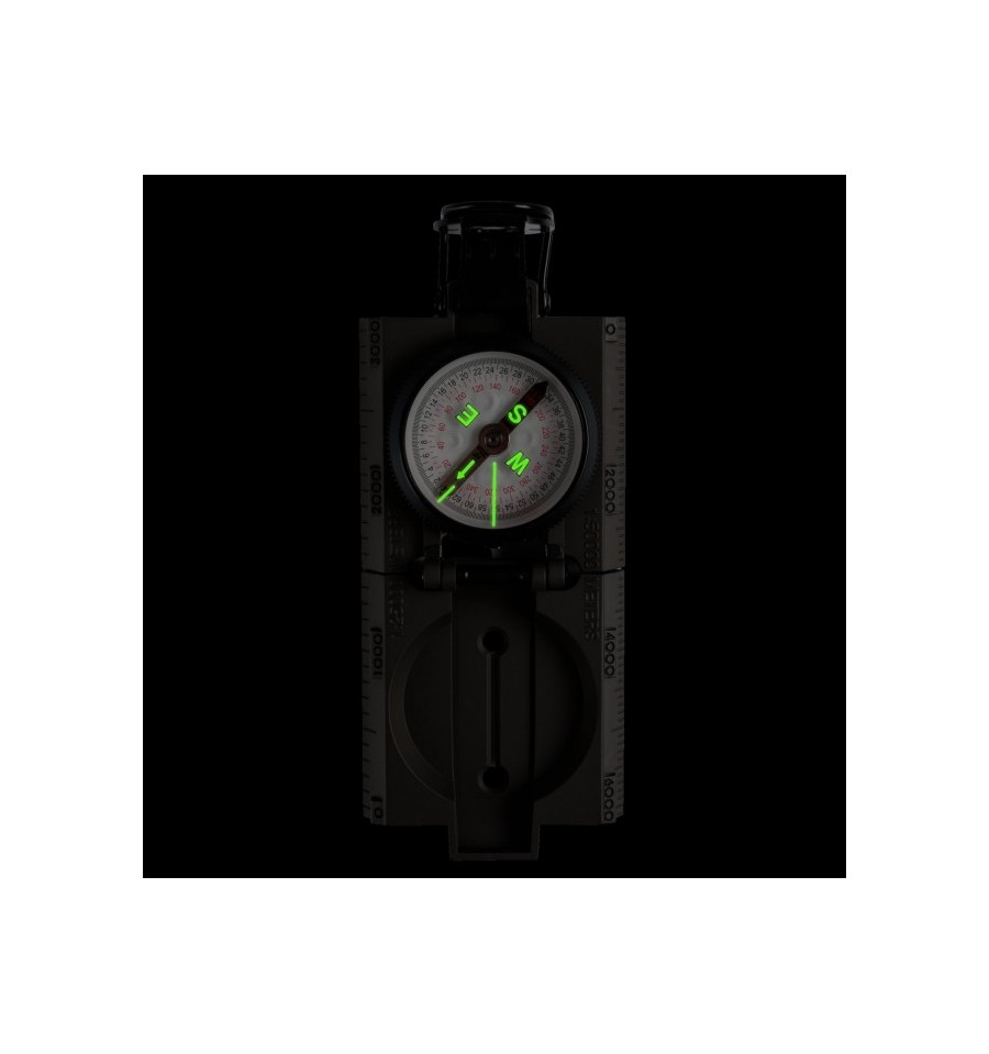 Busola de la Helikon-Tex din seria Bushcraft cu corpul durabil construit din plastic ABS, ghidaje fosforescente in timp ce pe laterale sunt prezente 2 scale 1:25000 si 1:50000