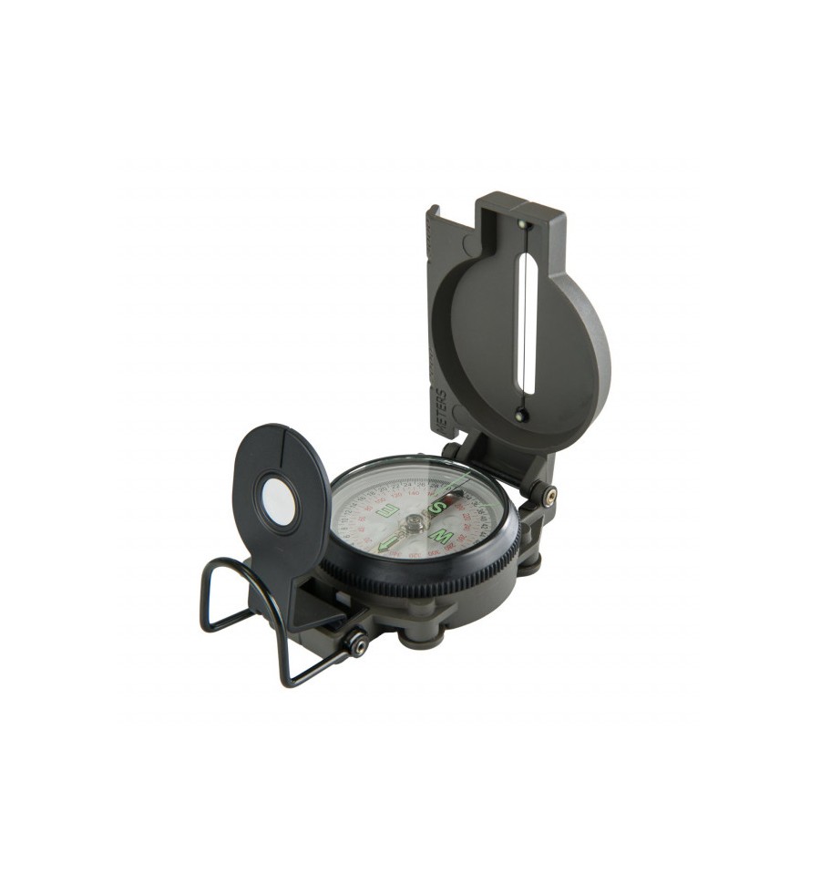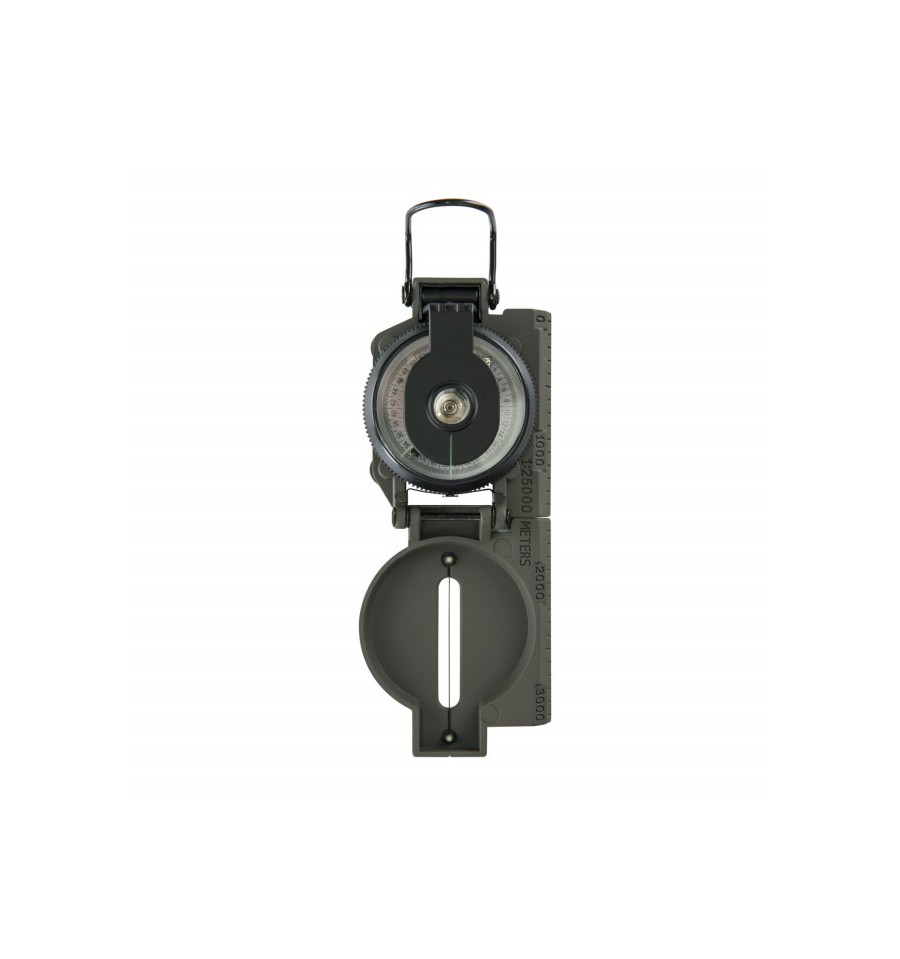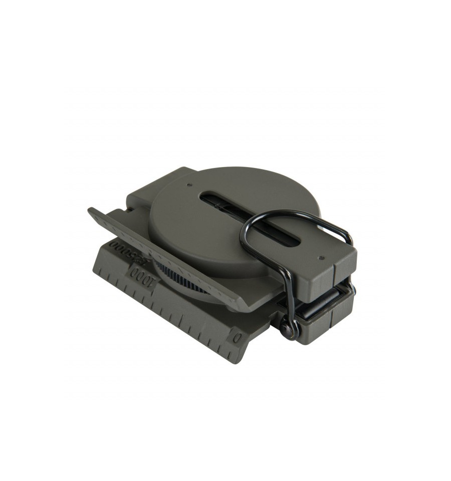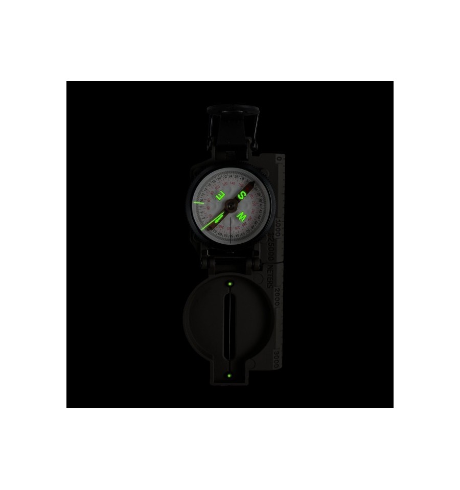 Busola de la Helikon-Tex din seria Bushcraft cu corpul durabil construit din aluminiu si plastic ABS, ghidaje fosforescente in timp ce pe laterale este prezenta prezente 1 scala 1:25000.