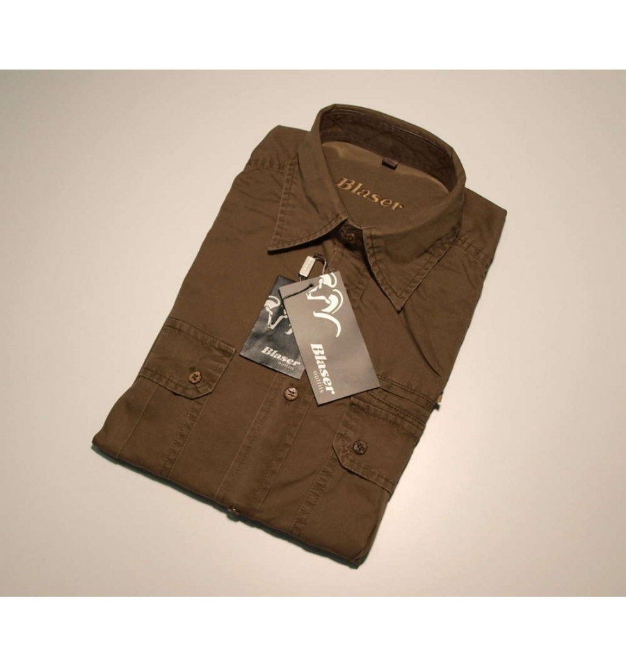 Camașă pentru vânătoare, fabricata din bumbac 100%, prevazuta cu două buzunare la piept și logoul Blaser brodat.