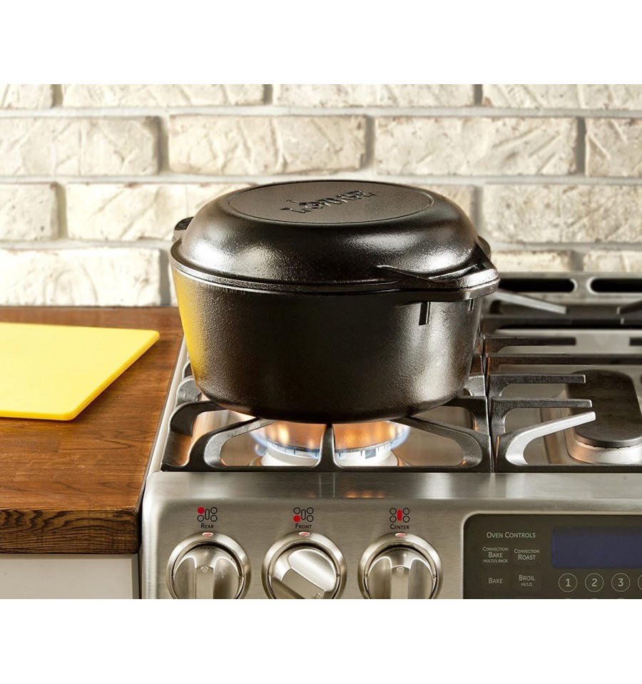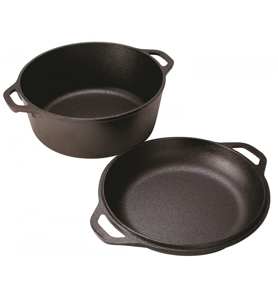 Intr-un singur set, dispuneti de un ceaun de tip cuptor olandez si de un capac care poate functiona, in acelasi timp, ca tigaie. Este foarte adevarat, ati citit bine! Capacul se transforma intr-o tigaie de circa 26 de centimetri, cu maner dublu. Cand setul este folosit pe post de cuptor olandez, este perfect pentru a pregati fripturi, retete de paine care nu necesita framantare, supe, sosuri si tocane. Manerul dubla va permite sa transportati cu usurinta vasul acolo unde aveti nevoie cand gatiti. Fonta va ofera bucuria de a experimenta o distributie si o retentie excelente si uniforme ale caldurii, pentru rezultate de gatire optime. Setul este preasezonat si gata de utilizare imediat ce il despachetati.