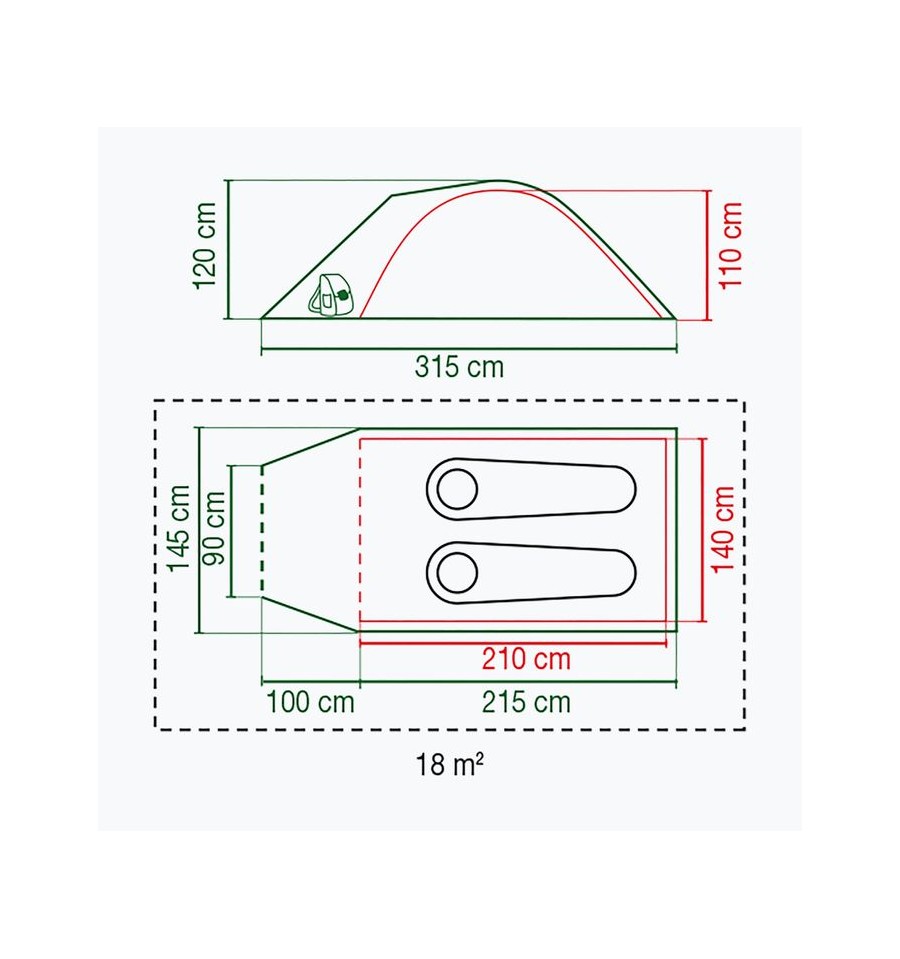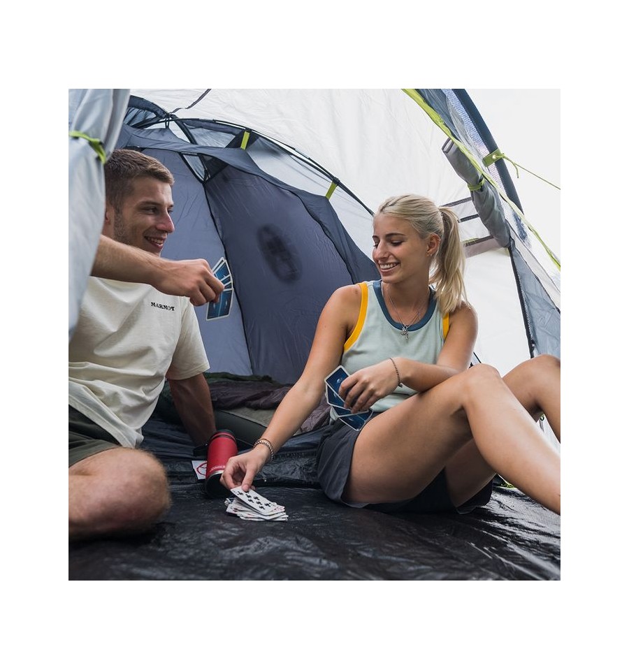 - Foaia de sol complet cusuta - protejeaza interiorul cortului de bug-uri si apa, pentru un plus de confort