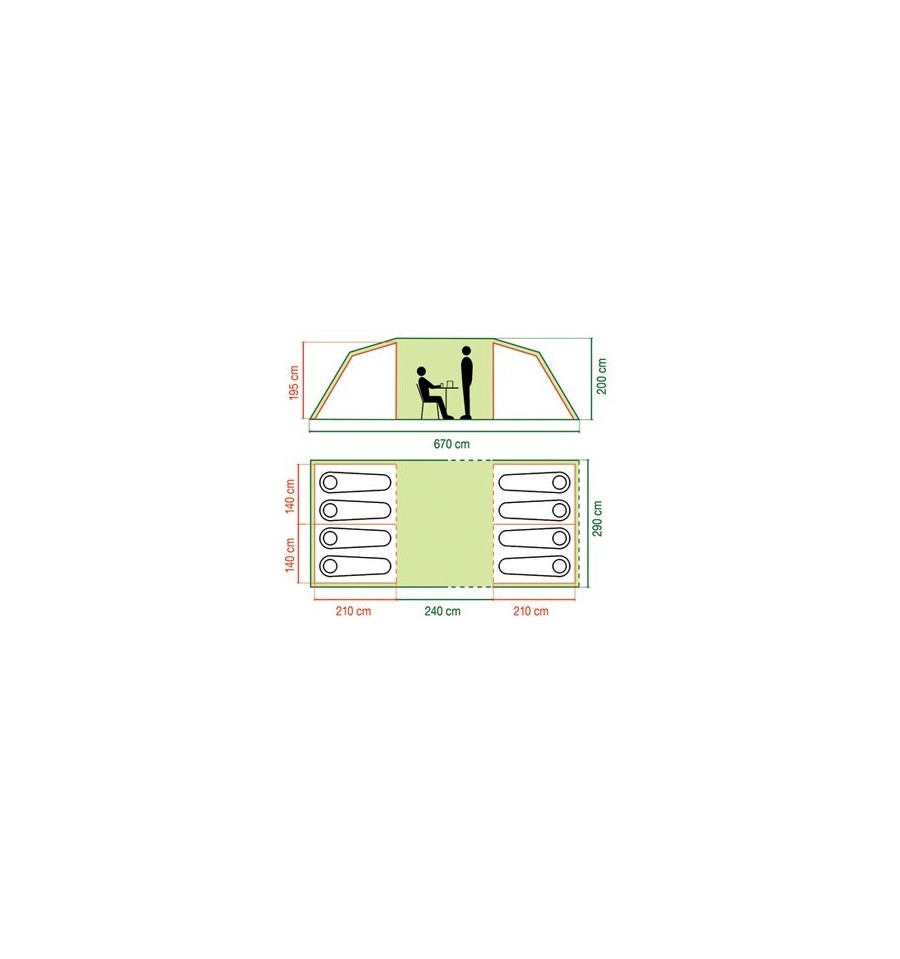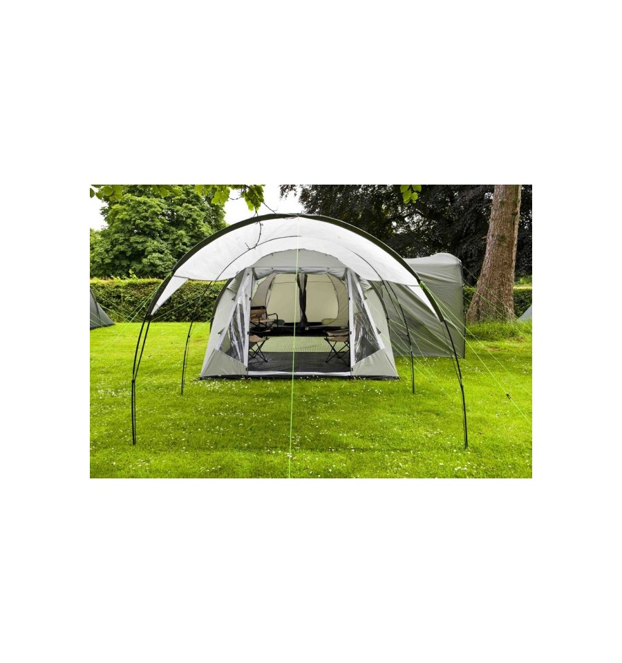 Structura stabila, tip tunel, ofera dimensiuni generoase pentru 8 persoane cu pana la 4 dormitoare separate pentru intimitate sporita. Spatiul central de dimensiuni generoase ofera spatiu suficient pentru o masa mare inconjurata de scaune.