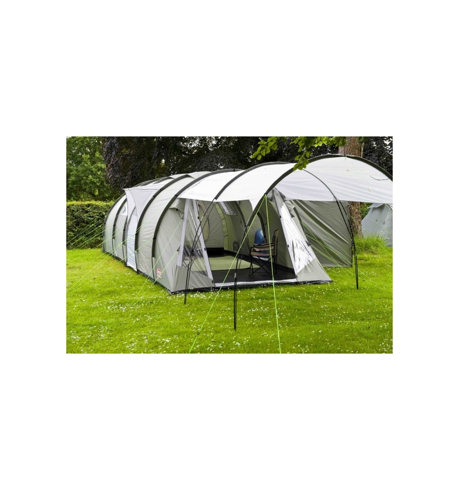 Foarte usor de montat gratie stucturii tip tunel stabile si rezistente, designul se concentreaza pe comoditate si utilitate pentru intreg grupul cu insusiri practice cum ar fi protectie pentru varfuri la usile tip pavilion, noile jaluzele cu atorulare Coleman®, o deschidere pentru montarea optionala a unui aer conditionat, port de acces pentru cablul de electricitate si groundnsheet cusut pentru a va feri de elemente.