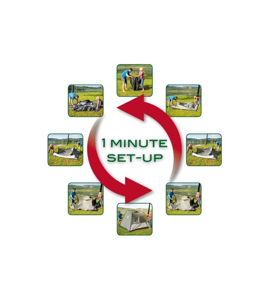 Porniti aventura dumneavoastra outdoor in cateva minute cu gama de corturi Coleman Instant Dome. Beneficiind de un sistem revolutionar de sustinere, tip paianjen, betele din otel si fibra de sticla sunt deja atasate cortului pentru o asezare foarte rapida in numai un minut.