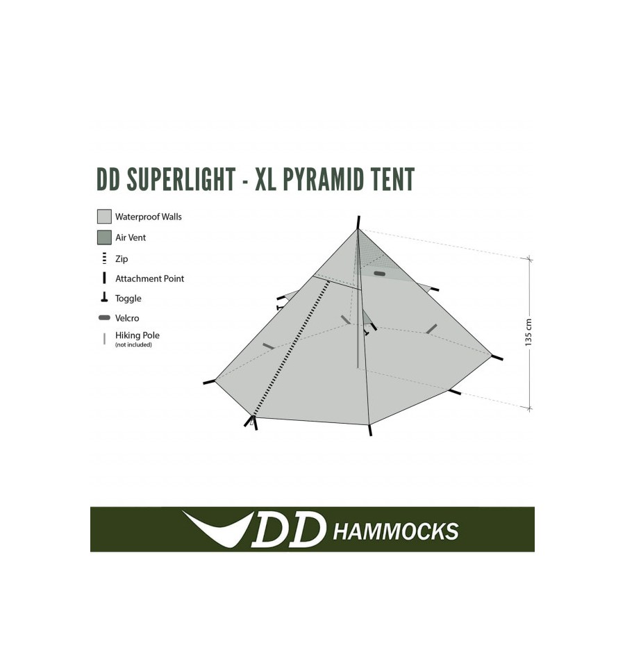 Cort DD Hammocks SuperLight Pyramid Tent XL, 610 grame, 260 x 220 x 135 cm