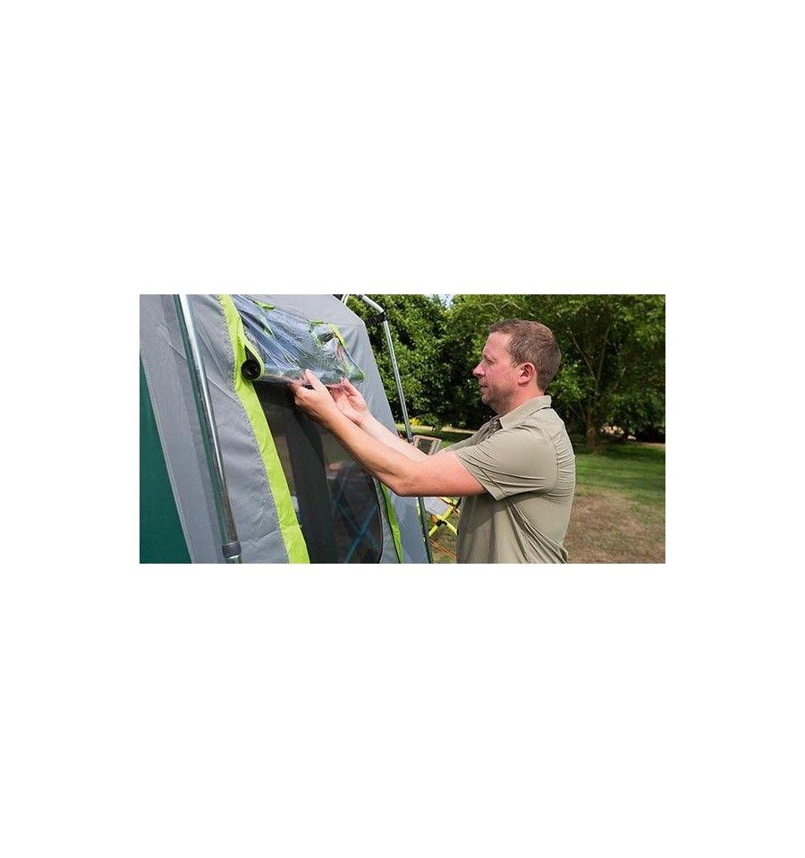 Foaia exterioara a cortului este tratata cu UVGuard ™ de la Coleman care asigura protectie SPF 50 impotriva razelor soarelui.