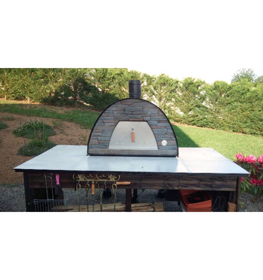 Acesta este un cuptor de pizza pe lemne foarte elegant, modern, care se incalzeste in doar 30 de minute. Fabricat manual in Portugalia, acest cuptor este de o calitate deosebita si va gati pizza la perfectie in mai putin de 3 minute. Dar cuptorul acesta nu se poate folosi doar pentru pizza! Poate gati orice, asemenea unui cuptor traditional si alimentele astfel pregatite vor avea un gust si mai bun.