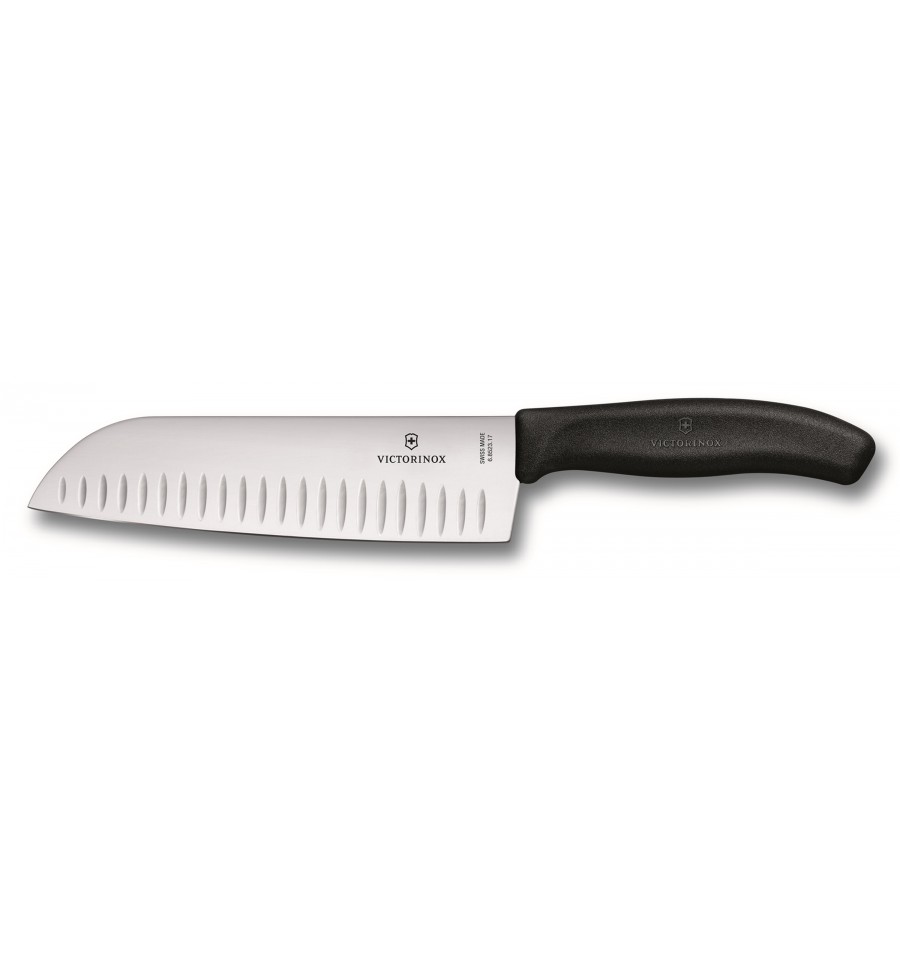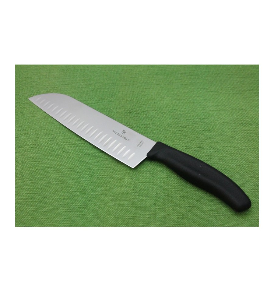 Cutit de bucatarie cu lama lata cu orificii speciale pentru legume, marca Victorinox.
