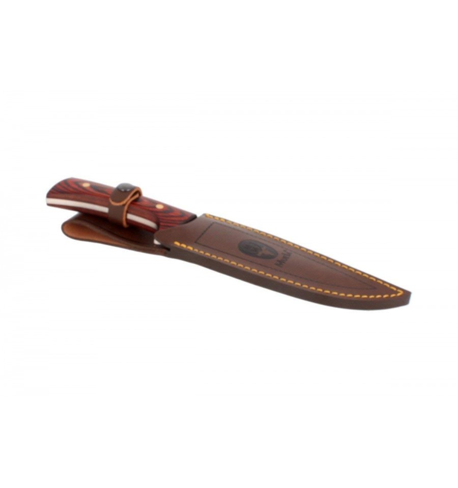 Cutitul Muela Jabali 17E vine insotit de teaca de piele maro.