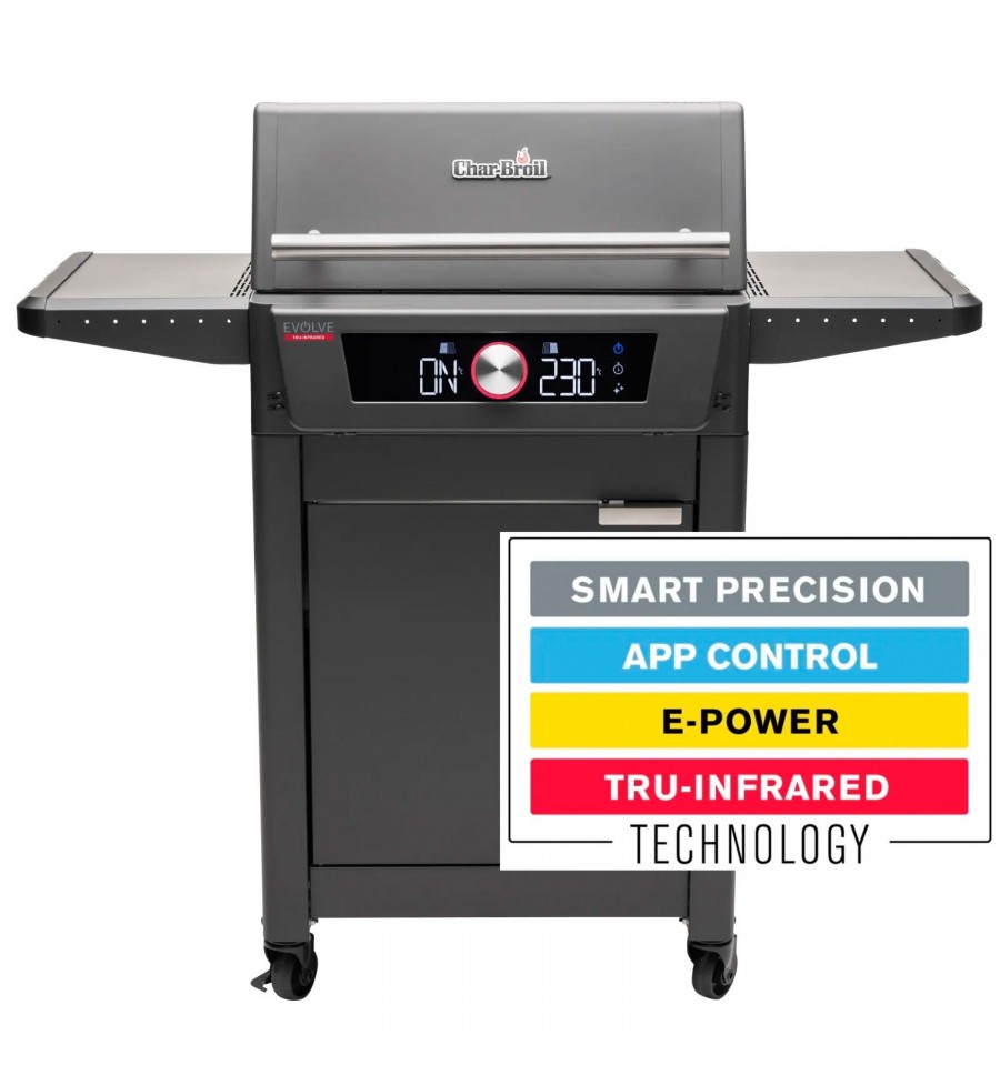 Modelul de gratar EVOLVE E-Power de la Charboril- precis, digital si inteligent. Controlati pur si simplu gratarul prin intermediul aplicatiei si relaxati-va in timp ce gatiti cum nu ati mai facut-o niciodata! Puteti urmari in orice moment caldura, cronometrul si valoarea exacta a senzorilor de temperatura interna prin intermediul aplicatiei sau de pe ecranul modern. Sistemul practic de curatare AUTO CLEAN poate fi pornit rapid prin simpla apasare a unui buton. Cele doua zone de gratar ale grill-ului EVOLVE pot fi setate separat si cu precizie la temperaturi cuprinse intre 90 °C si 370 °C. Tehnologia TRU-Infrared, patentata de Char-Broil, face ca mancarea gatita la gratar sa fie cu pana la 50% mai suculenta. Faceti urmatorul pas pentru a deveni un adevarat profesionist al gratarului cu modelul EVOLVE si cu retetele si ghidurile sale interactive din aplicatie.