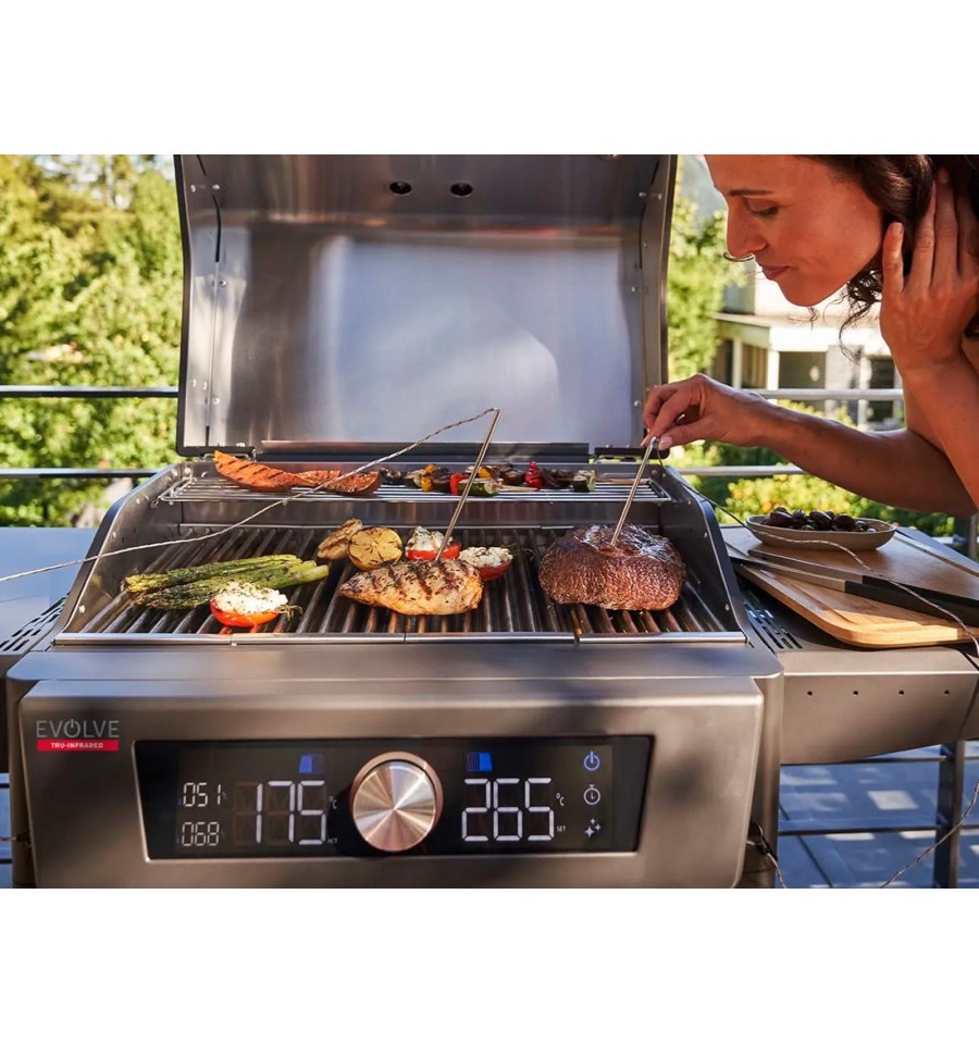 Cu senzorii de masurare a temperaturii interne, veti deveni un adevarat maestru al gratarelor. Puteti conecta la modelul EVOLVE pana la patru senzori, ceea ce va permite sa stati in permanenta cu ochii pe temperatura interna a preparatelor. Gratarul este echipat cu doi senzori de temperatura interna. Cititi cu usurinta temperaturile de pe afisajul ecranului sau de pe smartphone!