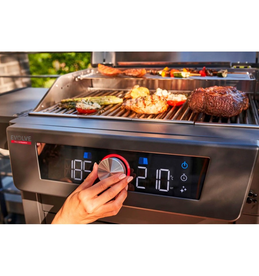 Cu un buton rotativ de control, temperatura modelului EVOLVE poate fi setata cu precizie intr-un interval cuprins intre 90 si 370 de grade. Controlul este facilitat de ecranul digital. Rezultatele pe care le obtineti la gratar vor fi astfel mereu perfecte.