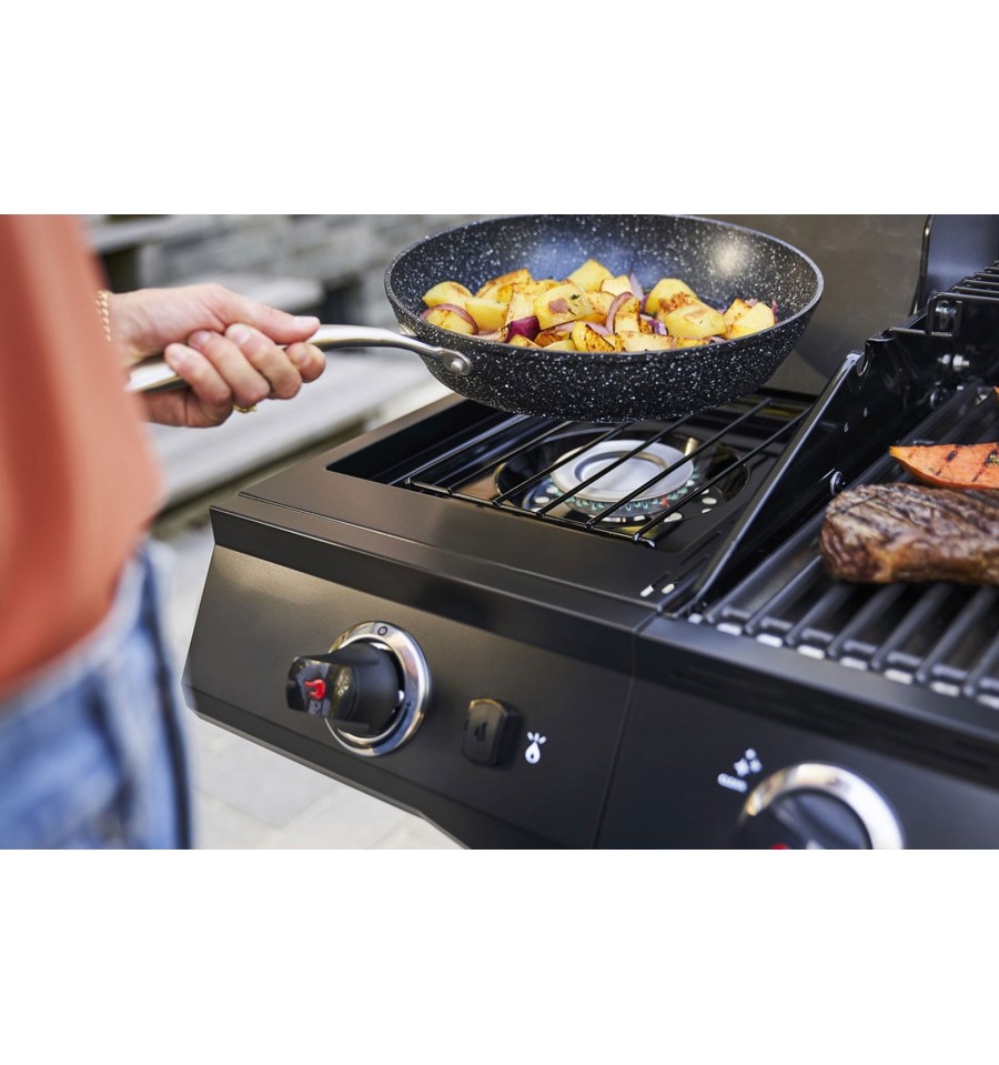 Materiale: grile din fonta portelanata, arzatoare si raft lateral din otel inoxidabil.