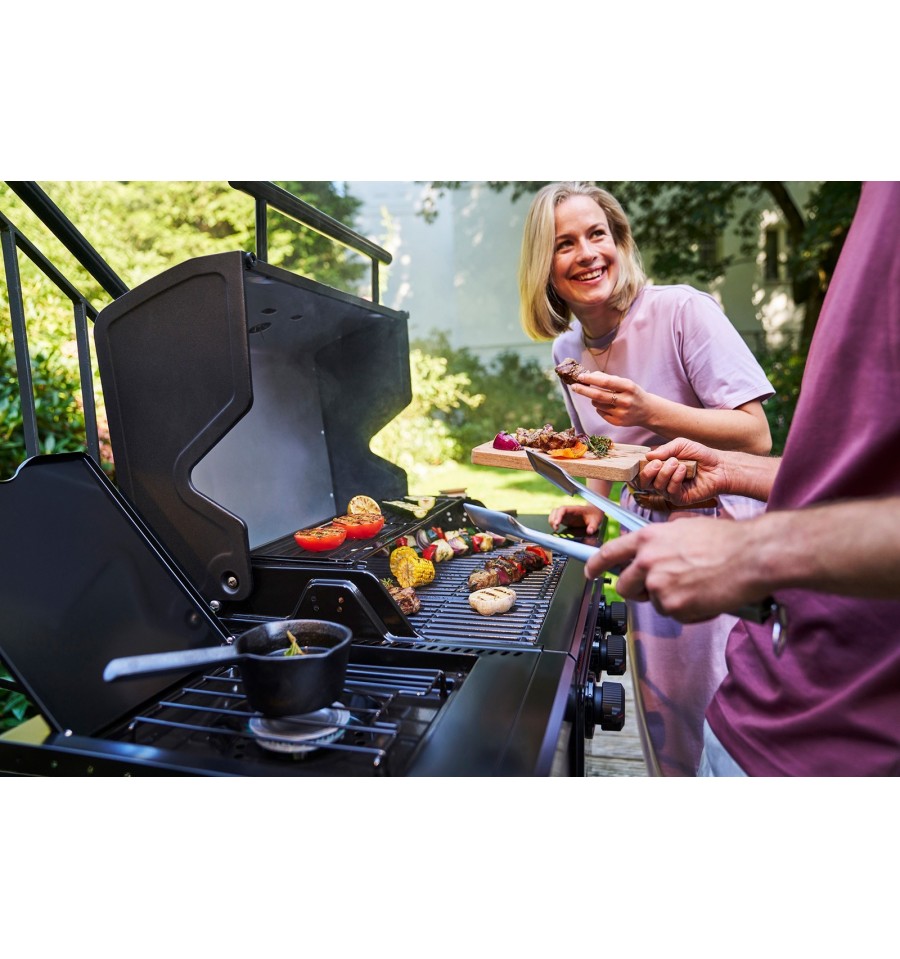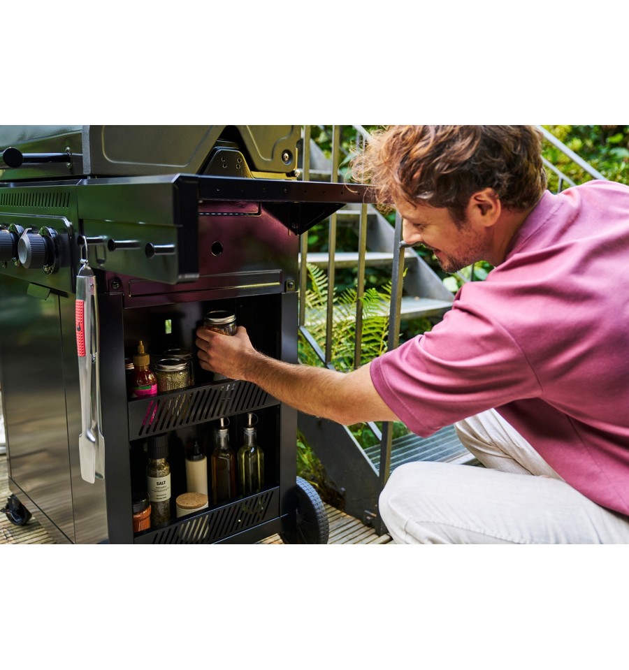 Doriti sa fiti organizat in timpul prepararii gratarului? Cu doua compartimente laterale de depozitare, veti avea intotdeauna condimentele si ustensilele la indemana. Dulapul integrat si raftul lateral cu carlige GEAR TRAX ofera un loc sigur pentru butelia de gaz si accesorii, astfel incat sa va puteti concentra pe ceea ce conteaza cel mai mult: gratarul.