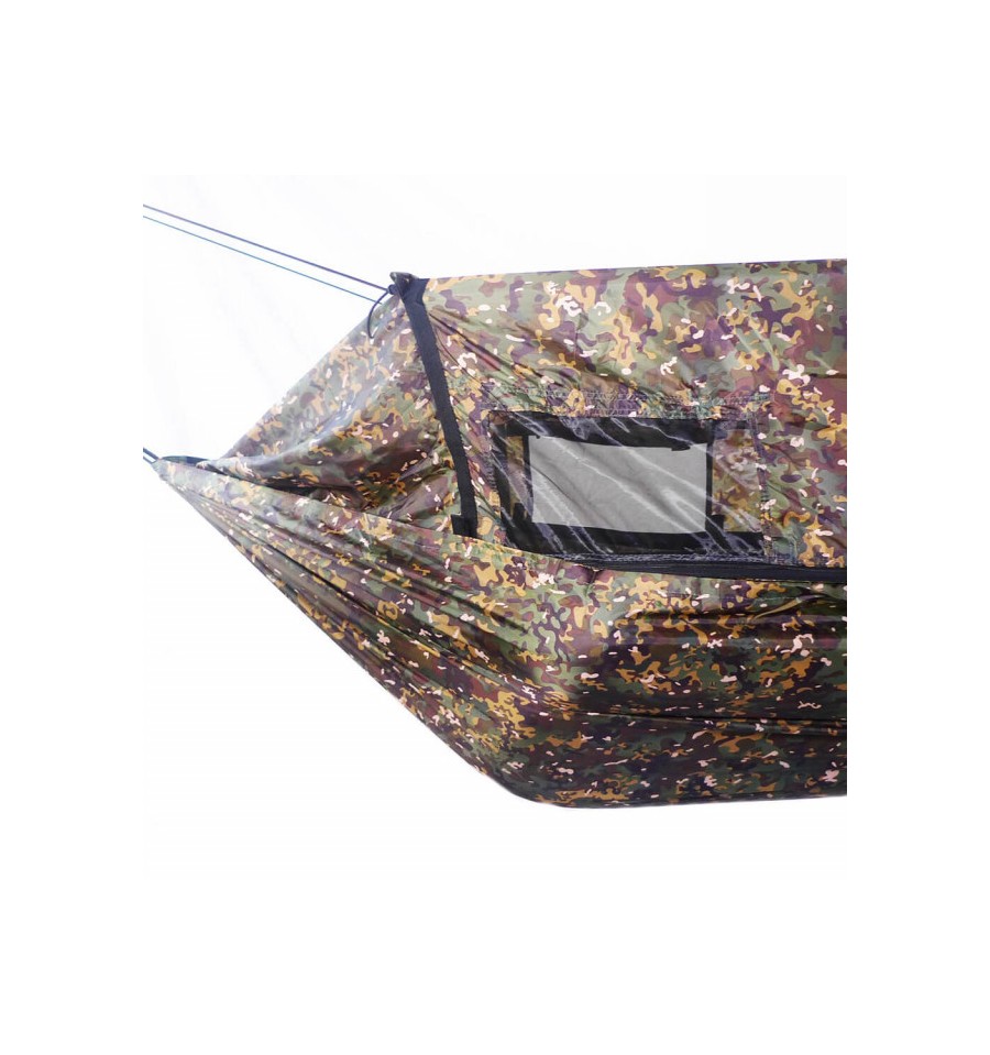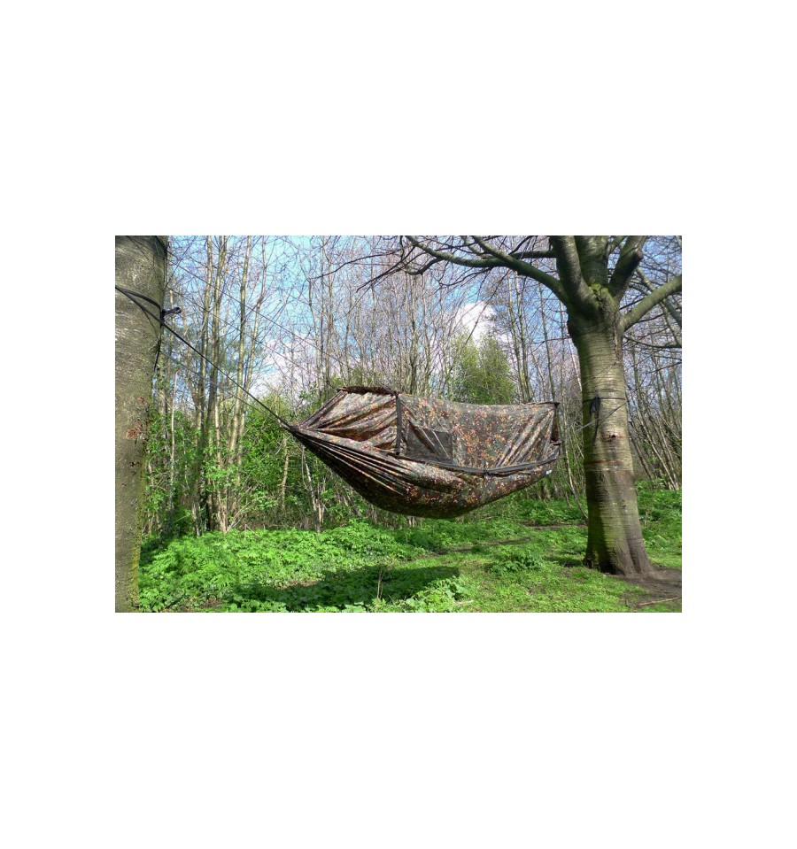 Hamac camuflaj Nest are un acoperis realizat din material integral MC/camuflaj astfel, esti mai bine protejat de insecte si vant, dar si de privirile vecinilor de camping sau cele ale animalelor salbatice.