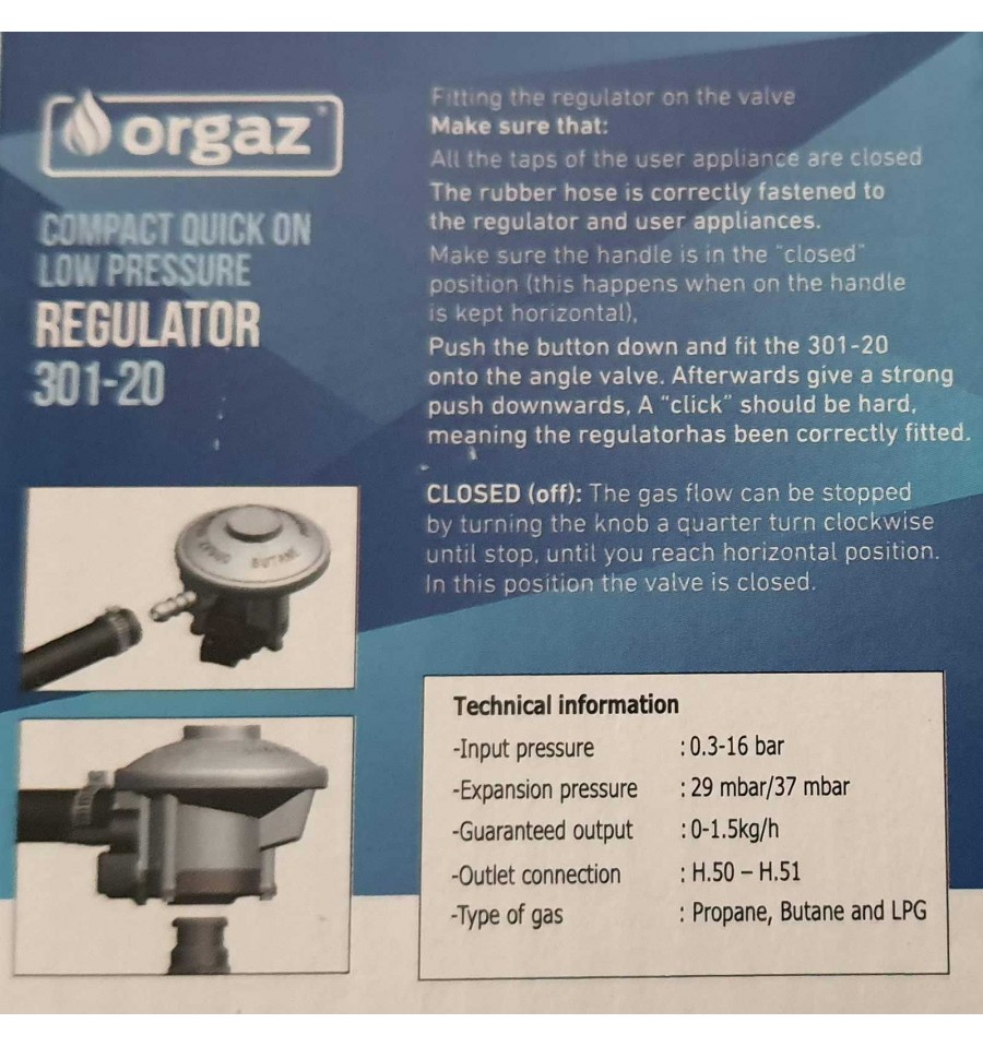 Kit regulator gaz dedicat pentru butelie ButanGas Camping include furtun 80cm Orgaz 301-20. Cu butelia Camping de la ButanGas, ai momente delicioase oriunde te-ai afla.