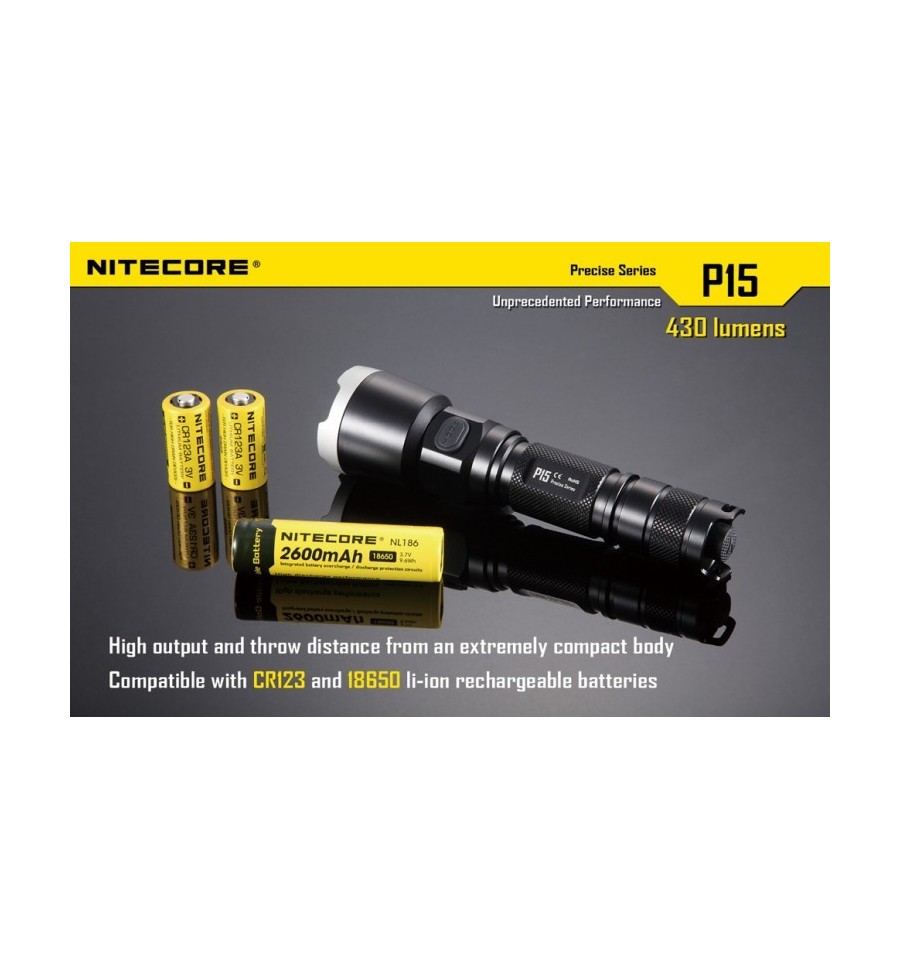 Lanterna LED profesionala Nitecore P16 este compatibila cu alimentare tip CR123 sau acumulator 18650, iar timpii de functionare variaza in functie de acestea: