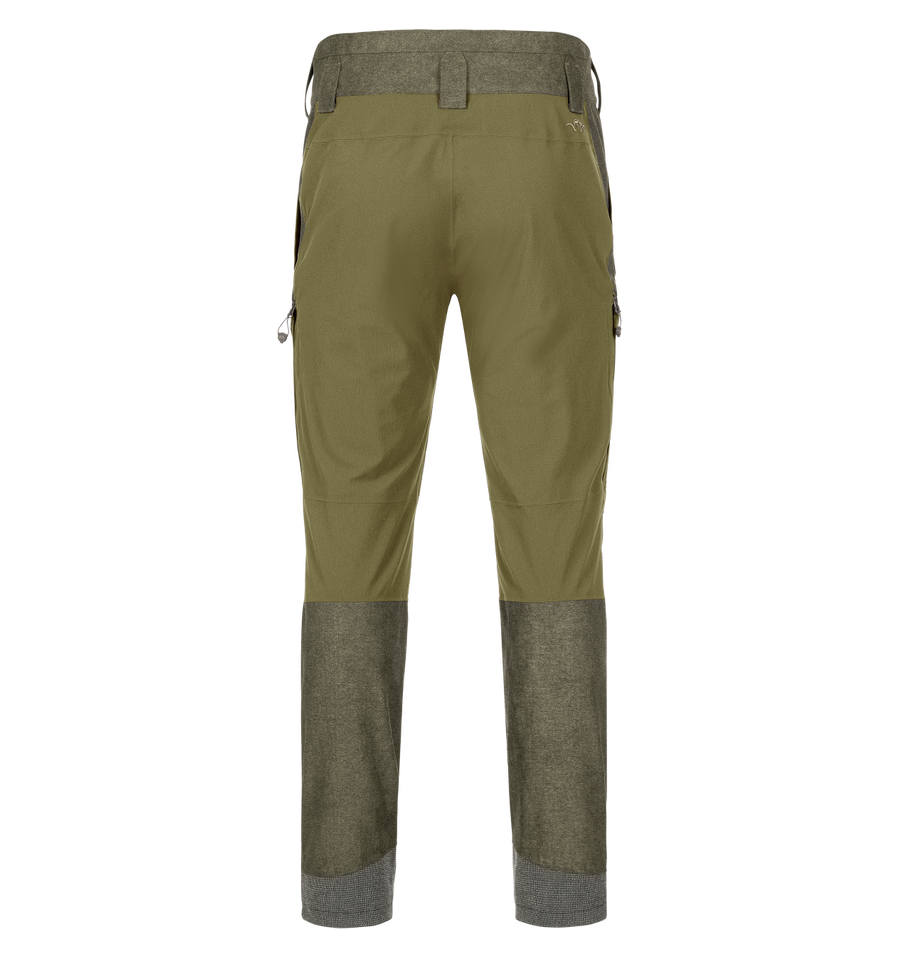Pantaloni cu un amestec de material vintage super moale și material rezistent, elastic în 4 direcții, peste genunchi și partea din spate. Materialul de întărire Kevlar® pe tivul inferior.