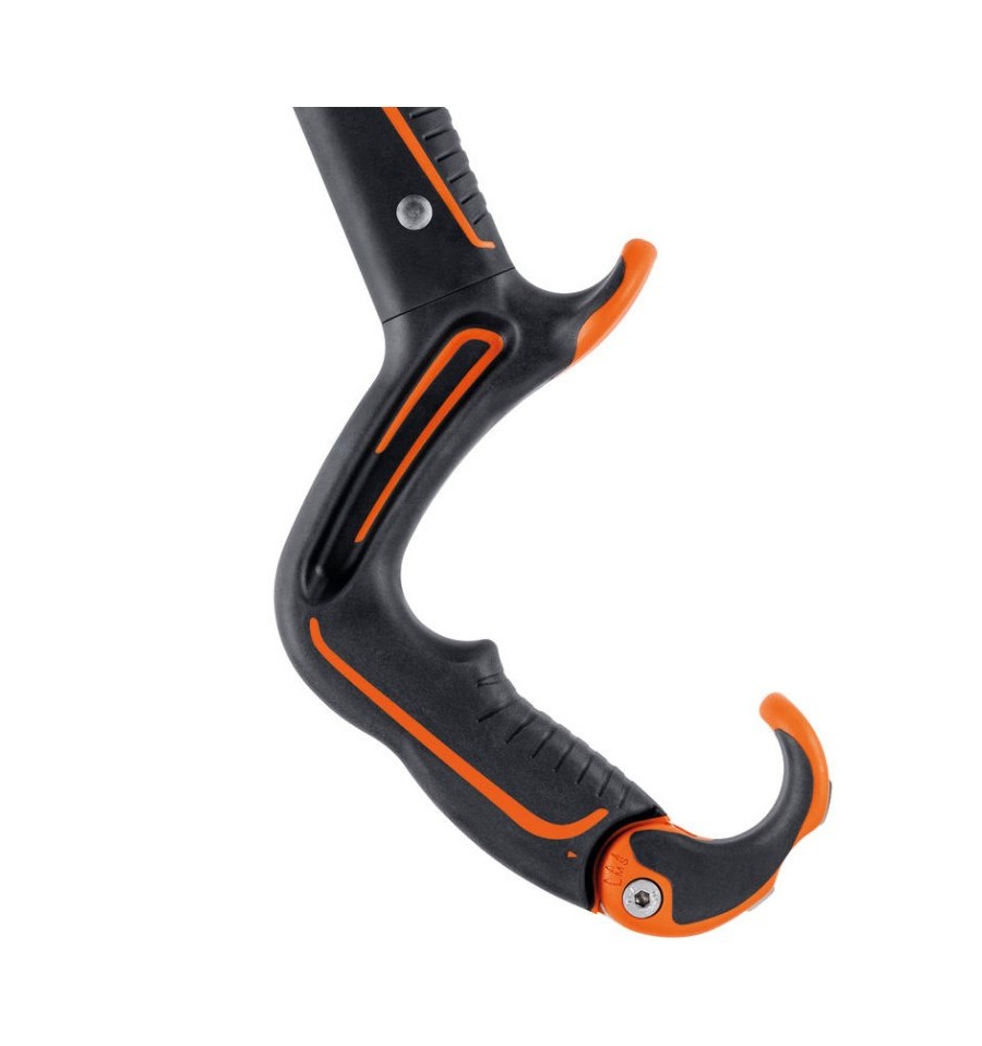Pioletul Ergonomic este proiectat pentru gheata abrupta si dry tooling. Unghiul ascutit al manerului este ideal pentru perioade indelungate de atarnare si creste putere cand tragi.