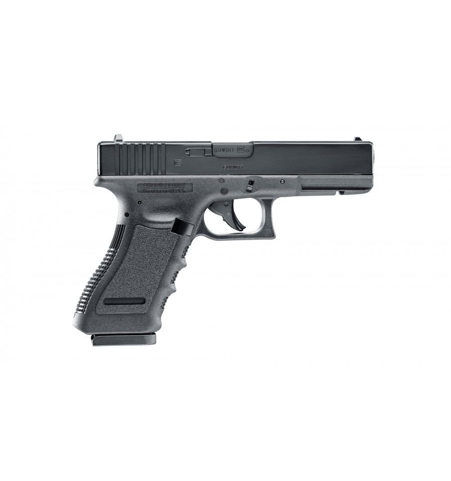 Glock 17 este un pistol airsoft actionat cu CO2, cu culantă metalică grea, care generează reculul necesar pentru o experiență căt se poate de realistă. GLOCK 17 cu marcajele originale ale prototipului, cu aceleași dimensiuni este ideal pentru practică cât și pentru colecționarii de arme.