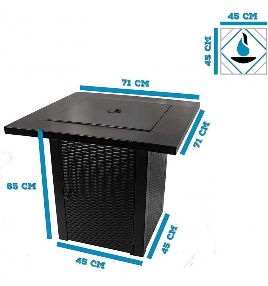 Semineul de tip masa pentru exterior Granada este fabricat din otel inoxidabil de calitate superioara si corespunde, astfel, celor mai exigente standarde de calitate. In plus, otelul este acoperit cu un strat de vopsea foarte rezistent la temperature ridicate. Arzatorul de 12,5 KW este fabricat din otel inoxidabil si este echipat cu aprindere de tip piezo, ceea ce garanteaza o durata de viata foarte lunga.