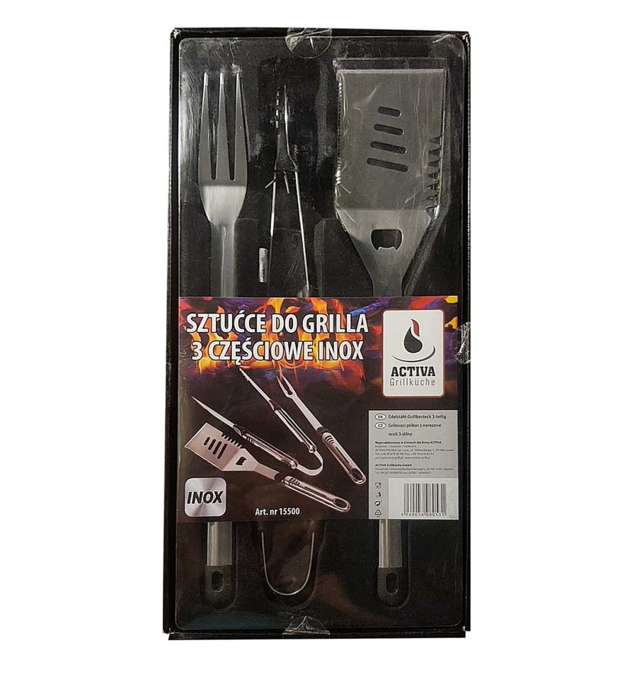 Set 3 ustensile din inox pentru gratar 47 cm Activa 15500 in ambalaj tip cadou.