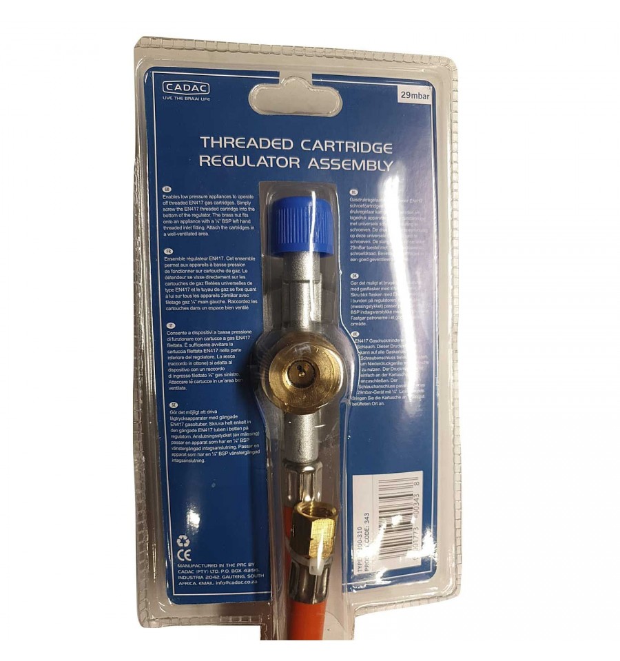Permite dispozitivelor de joasa presiune sa functioneze cu cartusele de gaz. Pur si simplu insurubati regulatorul la cartus, de exemplu, un cartus CADAC de 500g sau unul de 445g.