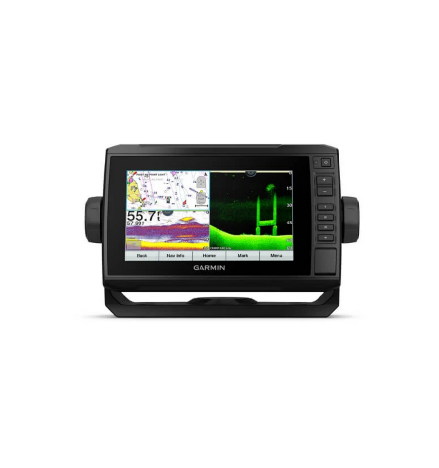 Chartplotterul cu ecran tactil de 7” lizibil în lumina soarelui dispune de un suport de tip Bail cu deblocare rapidă şi pachetul de traductoare adaugă sonarul cu scanare de definiţie ultra-înaltă şi sonarul tradiţional CHIRP.