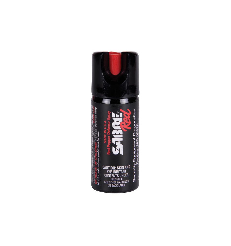 Spray defensiv eficient de la SABER Red, cu capacitate de până la 20 de pulverizări cu o rază de acțiune de 12 picioare.