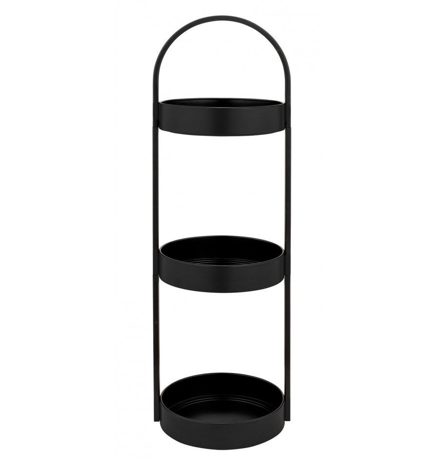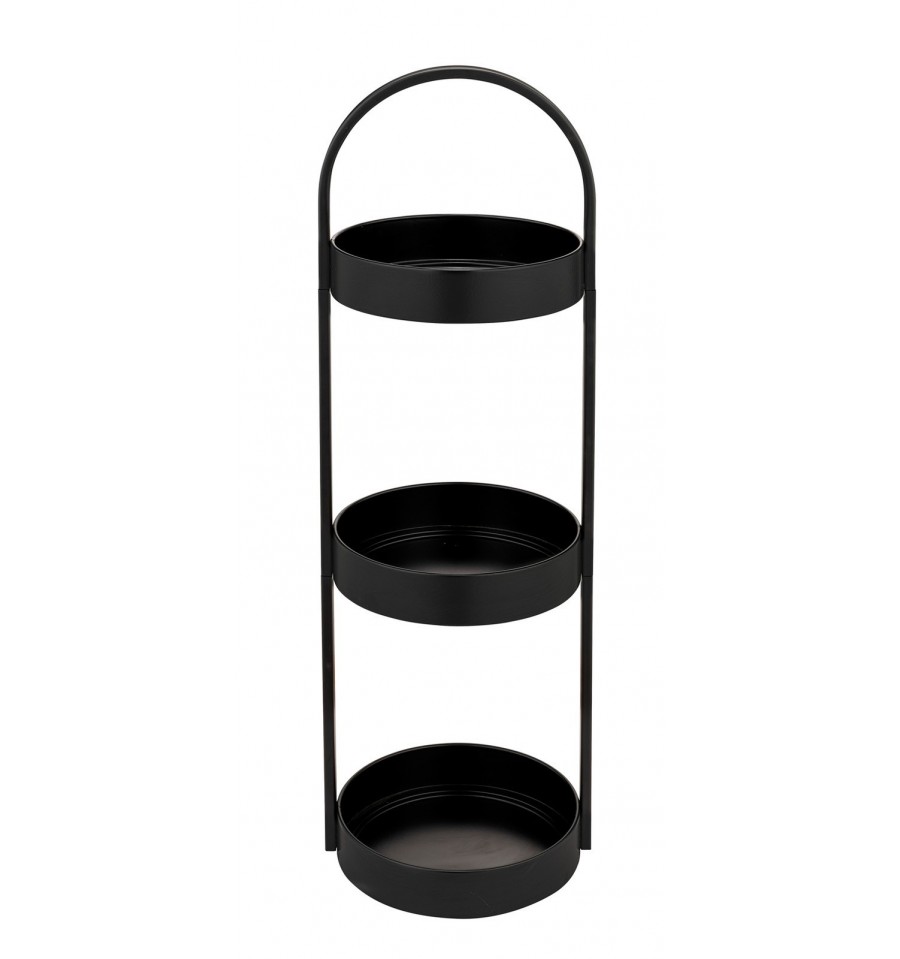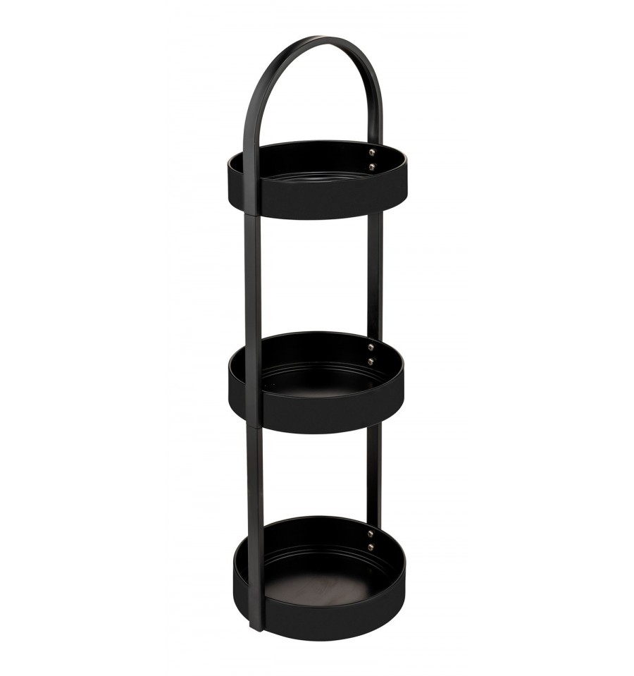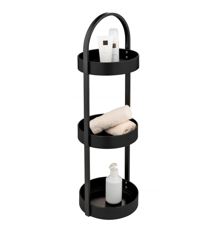 Organizatorul de baie modern, realizat din otel rezistent, lacuit, este ideal pentru a pastra toate lucrurile esentiale din baie si toaleta pentru oaspeti organizate cu grija si atractive din punct de vedere vizual. Pe cele 3 rafturi rotunde veti gasi suficient spatiu pentru a organiza in mod decorativ cosmeticele si produsele de ingrijire, cum ar fi cremele, lotiunile sau parfumurile. Raftul pentru baie este ideal si pentru depozitarea prosoapelor pentru oaspeti sau a halatelor.