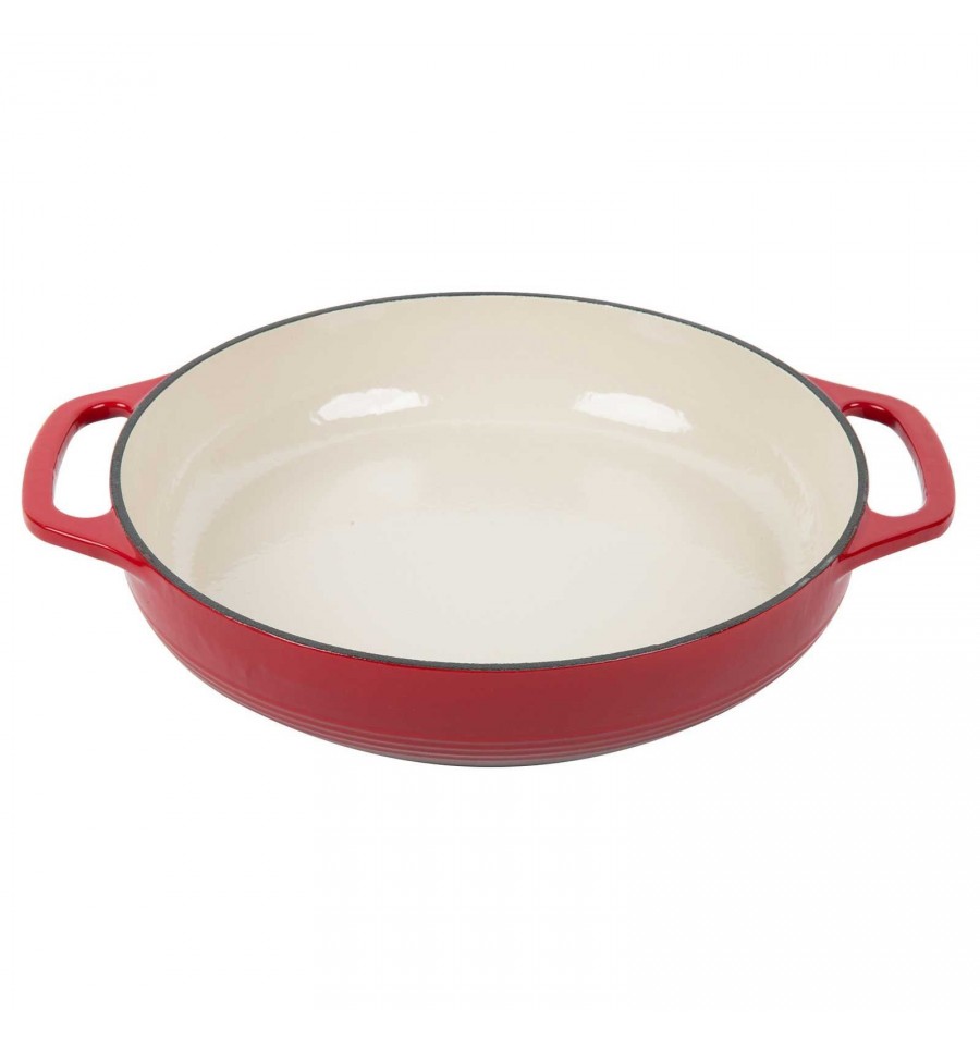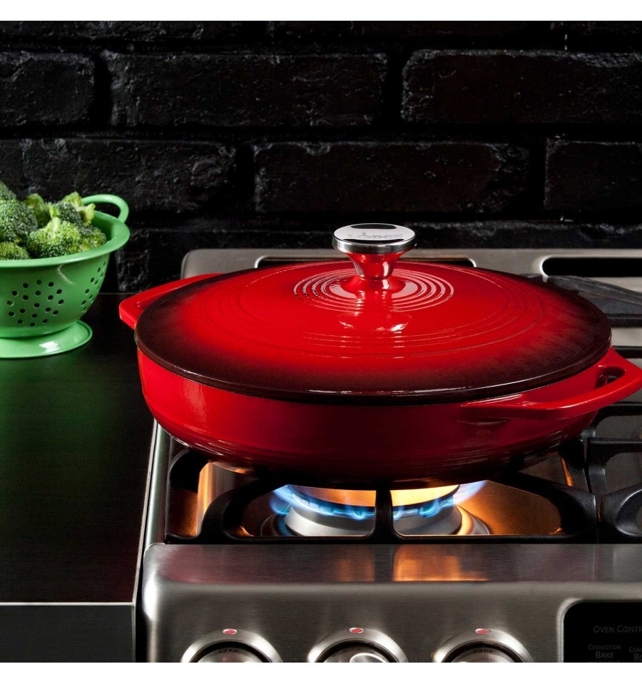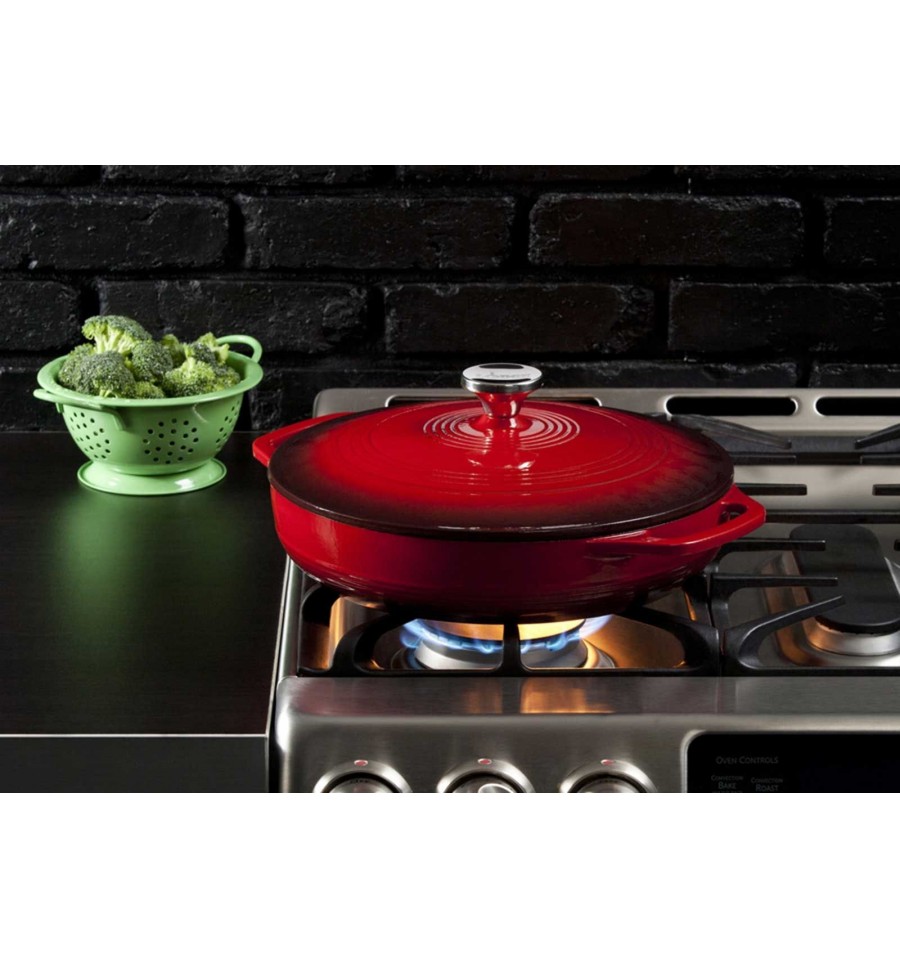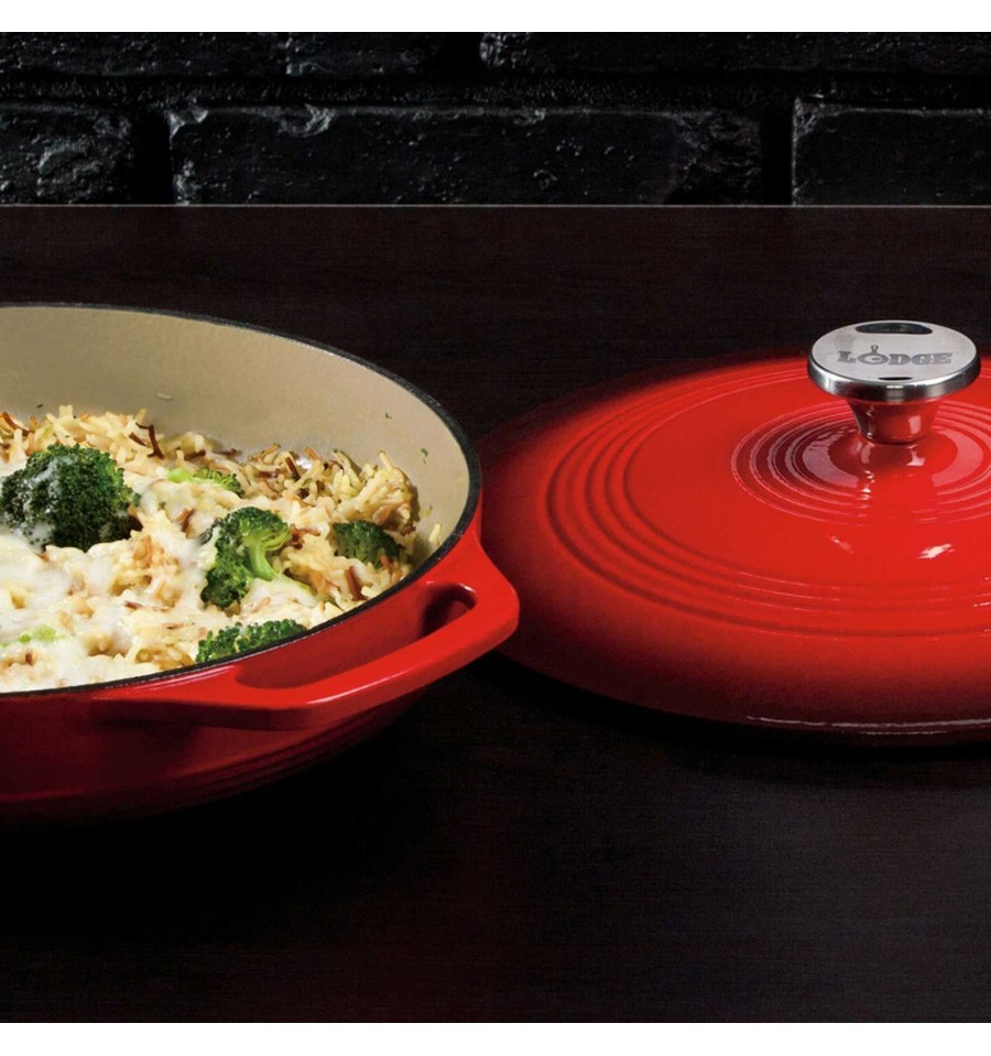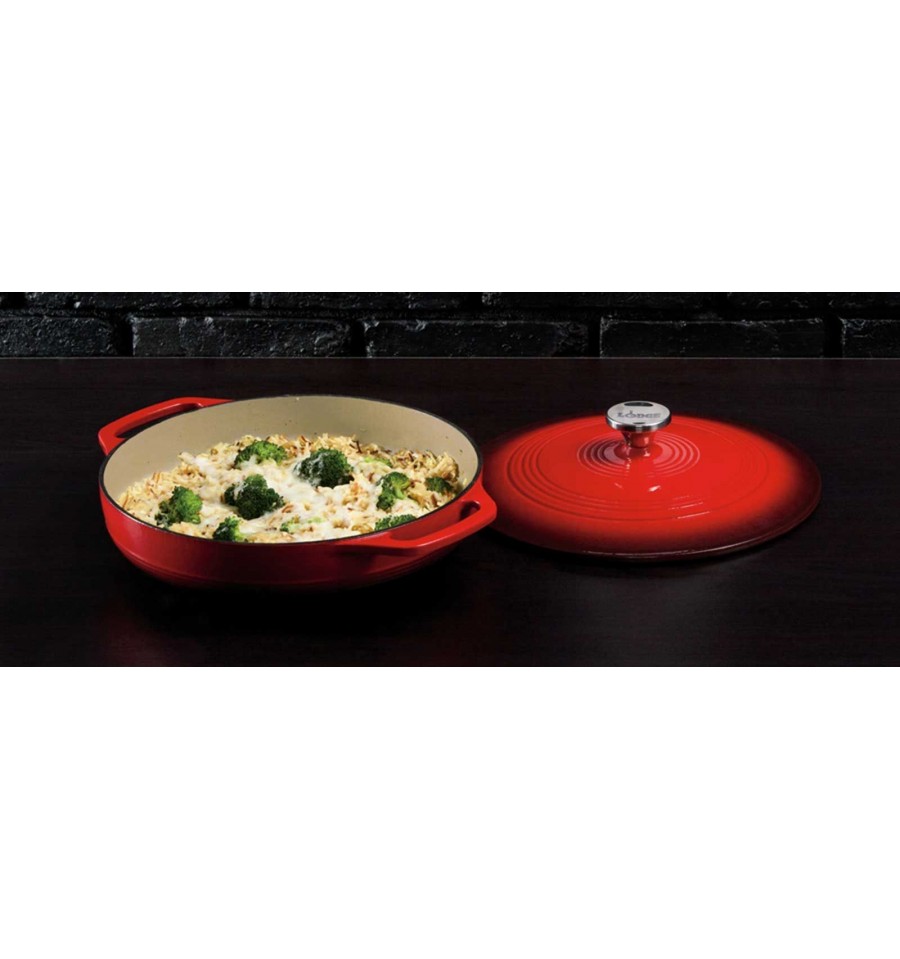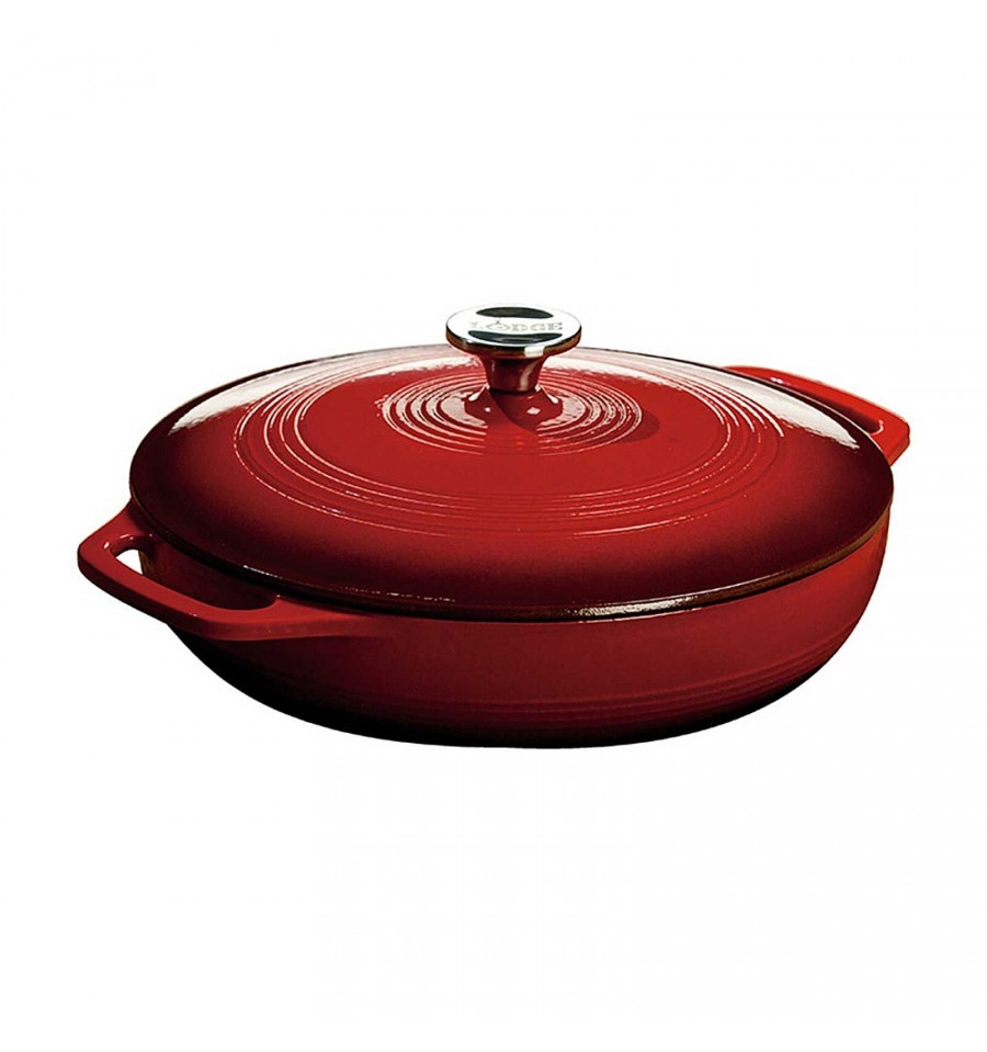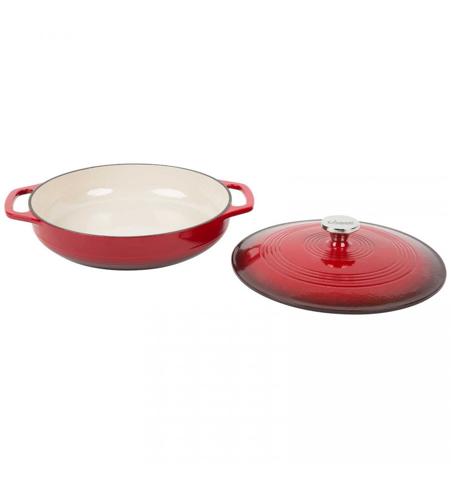 Aveti acum ocazia de a pregati urmatoarea caserola de mancare sau sufleul preferat in acest vas din fonta emailata de la Lodge, cu capac, cu o capacitate destul de generoasa de 3,4 litri, de culoare rosie. Designul fara cusur il face perfect si pentru gatire, evident, dar mai ales pentru servirea unor feluri culinare memorabile in acelasi vas in care au fost gatite.